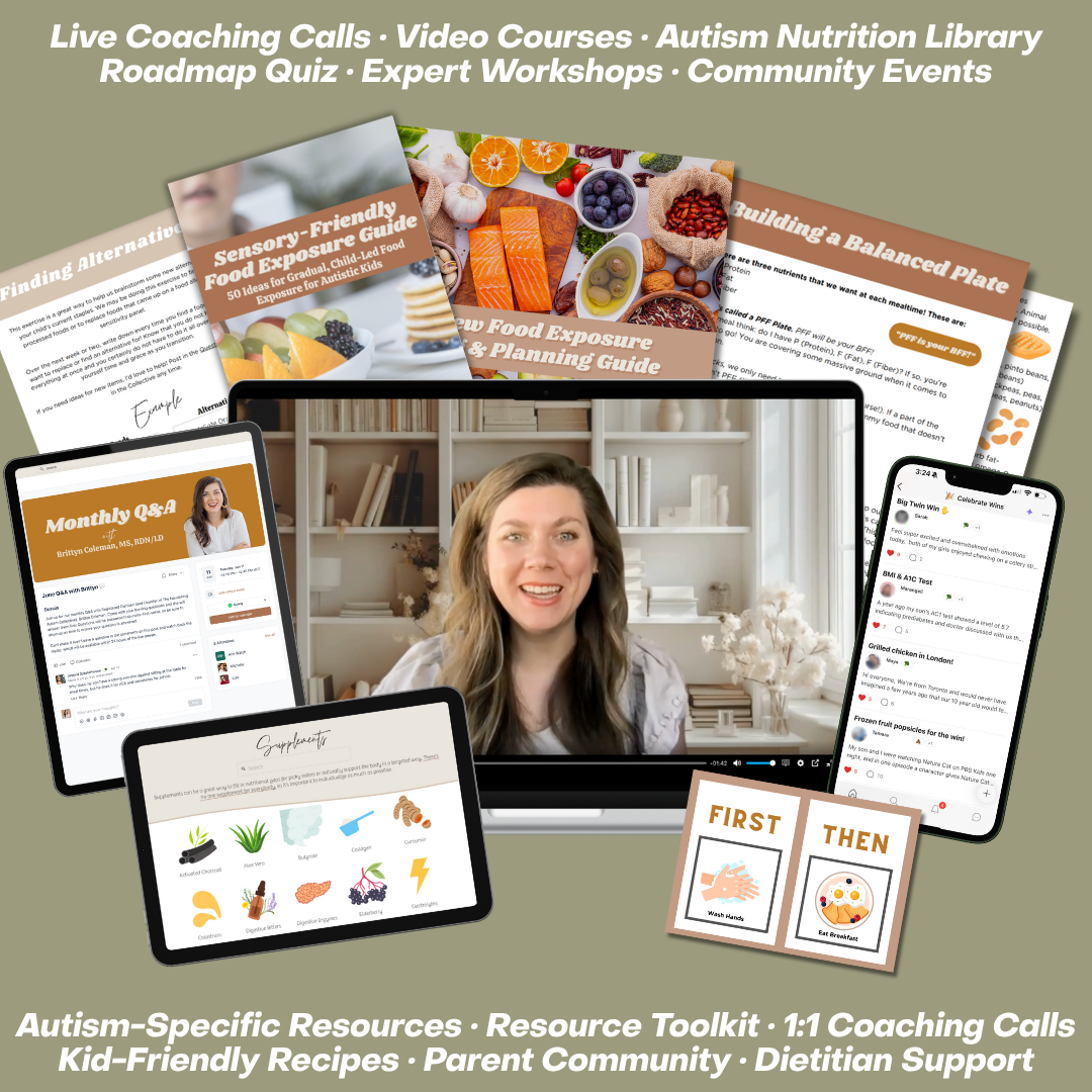 🎥 Monthly Live Calls with Brittyn — ask your questions and get guidance directly from an autism-specialized dietitian.