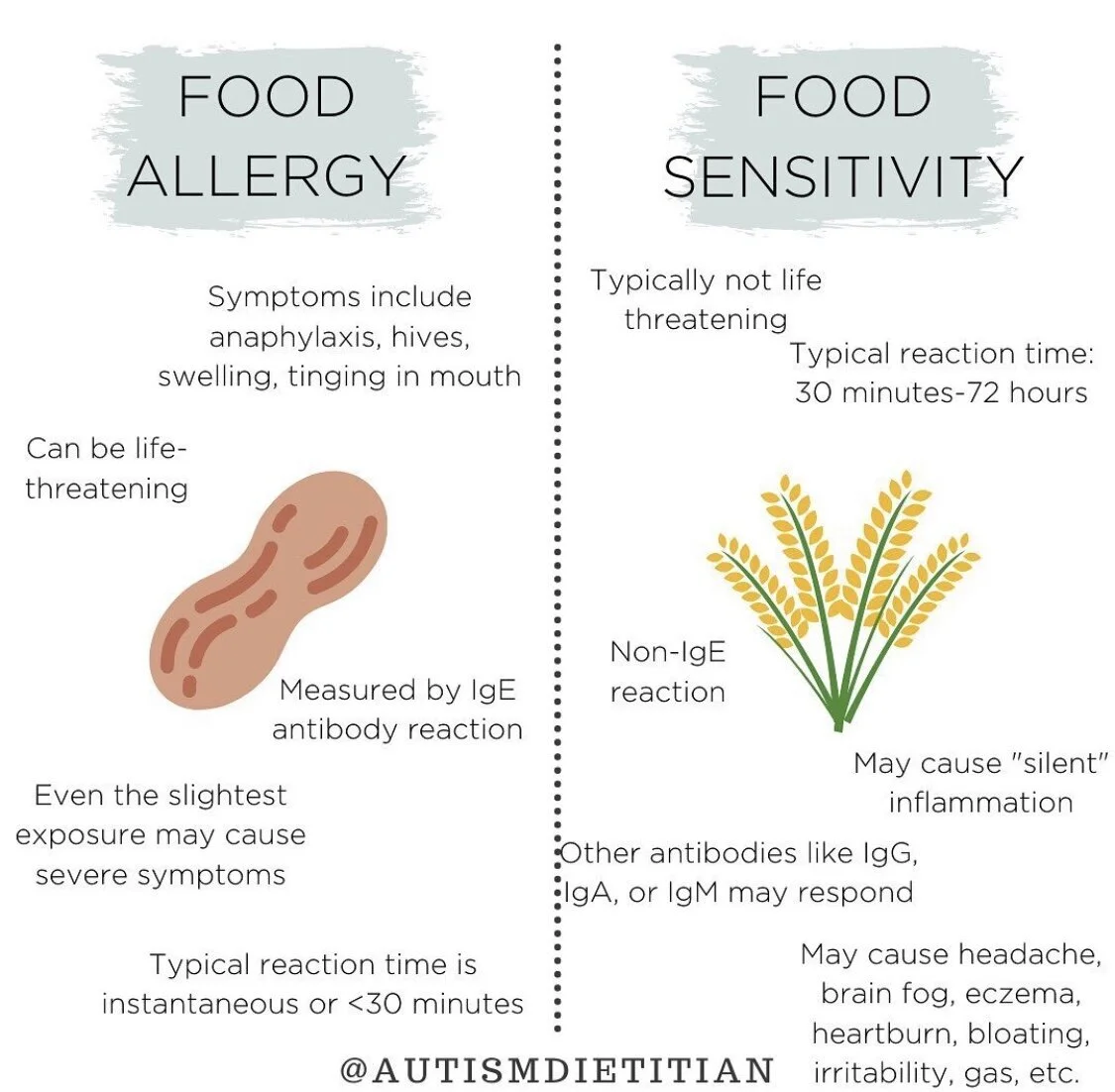 This is where it gets tricky! Each food reaction has different antibodies and cells involved, different reaction times, and varying levels of symptom severity.