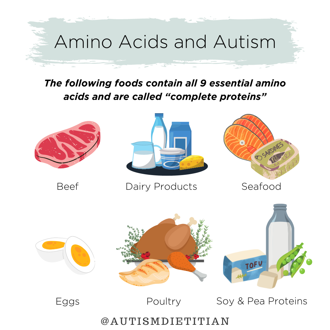 Many children on the autism spectrum are picky eaters and may have decreased protein intake, leading to amino acid deficiency. One research study highlighted that up to 60% of children on the autism spectrum may be deficient in at least one amino acid, most commonly valine, leucine, phenylalanine, and lysine. [6]