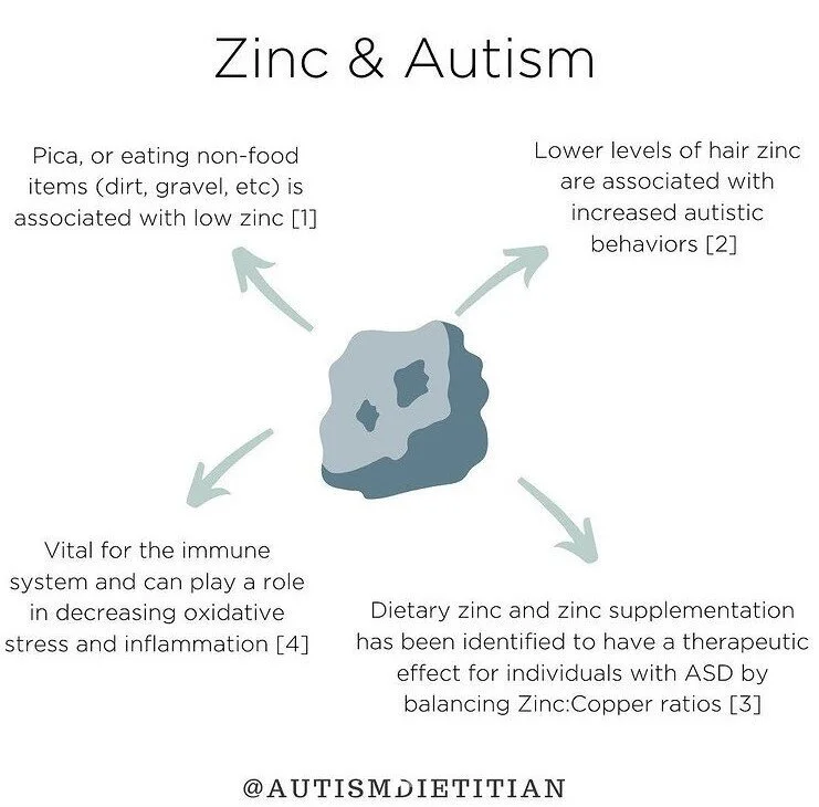 Dietary zinc and zinc supplementation has been identified to have a therapeutic effect for individuals with ASD. [2-4]