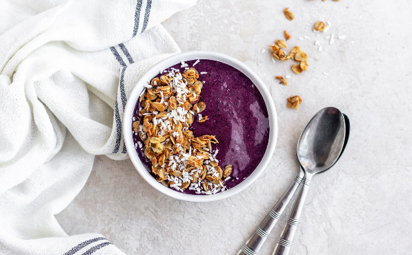 Transfer the smoothie to a bowl and top with the granola and coconut. Enjoy!